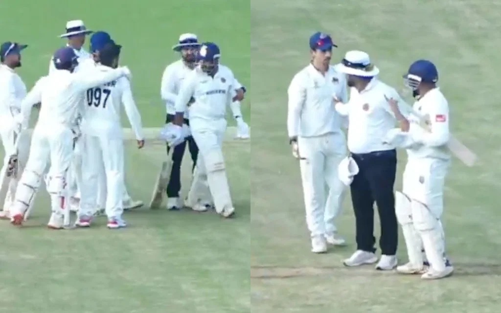പുറത്തായി മടങ്ങുന്നതിനിടെ പരിഹസിച്ച മുംബൈ താരങ്ങൾക്കു നേരെ പൃഥ്വി ഷാ ബാറ്റു വീശുകയായിരുന്നു. മുംബൈ യുവതാരം മുഷീർ ഖാൻ പൃഥ്വി ഷായെ സ്ലെഡ്ജ് ചെയ്യാൻ ശ്രമിച്ചതാണ് പ്രശ്നങ്ങൾ വഷളാക്കിയതെന്നു റിപ്പോർട്ടുണ്ട്. മുംബൈ താരങ്ങളുമായി ഏറെ നേരം തർക്കിച്ച പൃഥ്വി ഷായെ അംപയര് ഇടപെട്ടാണ് സമാധാനിപ്പിച്ചത്. മുംബൈ താരങ്ങൾക്കെതിരെ അംപയറോടു പരാതി പറഞ്ഞ ശേഷം പൃഥ്വി ഷാ ഗ്രൗണ്ട് വിട്ടു.