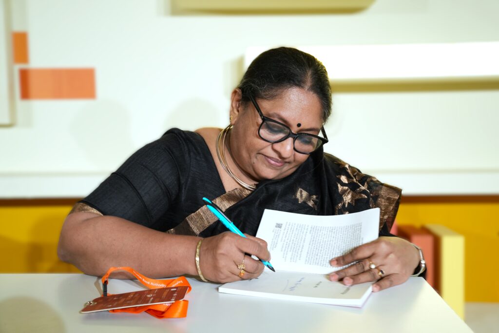 ഷാർജ അന്തർദേശിയ പുസ്തകോത്സവത്തിൽ വായനക്കാരുമായി സംവദിക്കുകയായിരുന്നു മീര